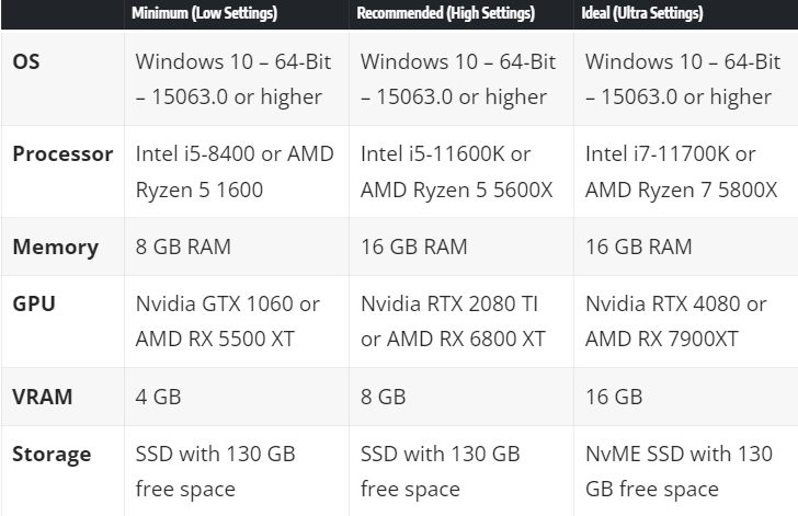 وب سایت رسمی Forza Motorsport ویژگی های زیر را برای نسخه PC تایید کرده است.