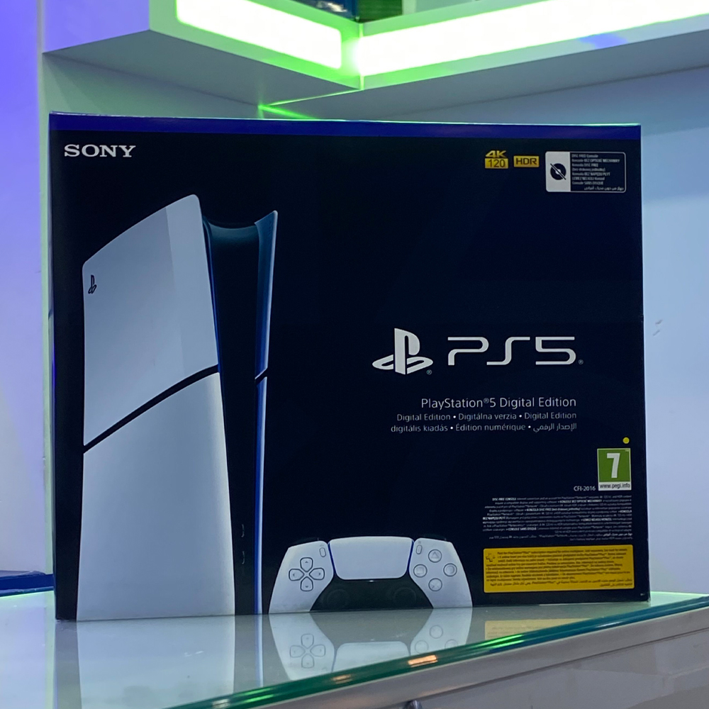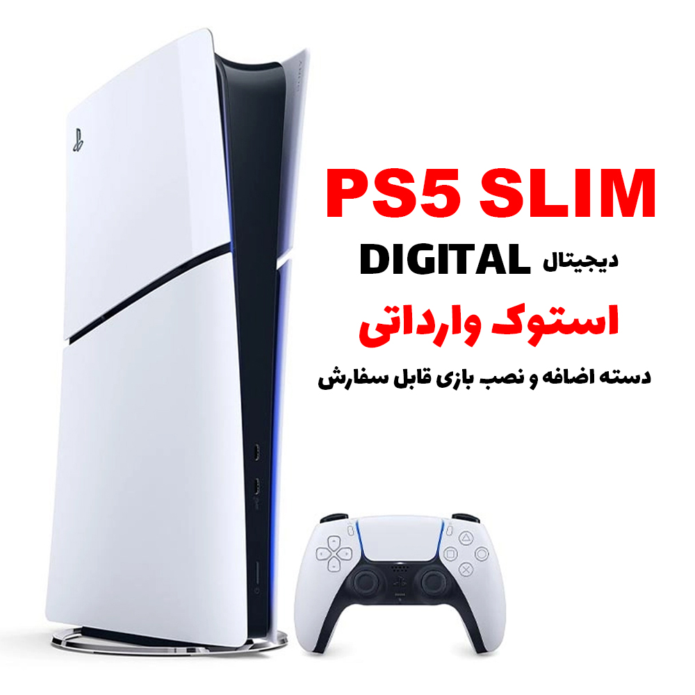 پلی استیشن 5 اسلیم دیجیتال نسخه ای از این کنسول است که درایو دیسک ندارد و تمامی بازی ها به صورت دیجیتالی نصب می شوند.